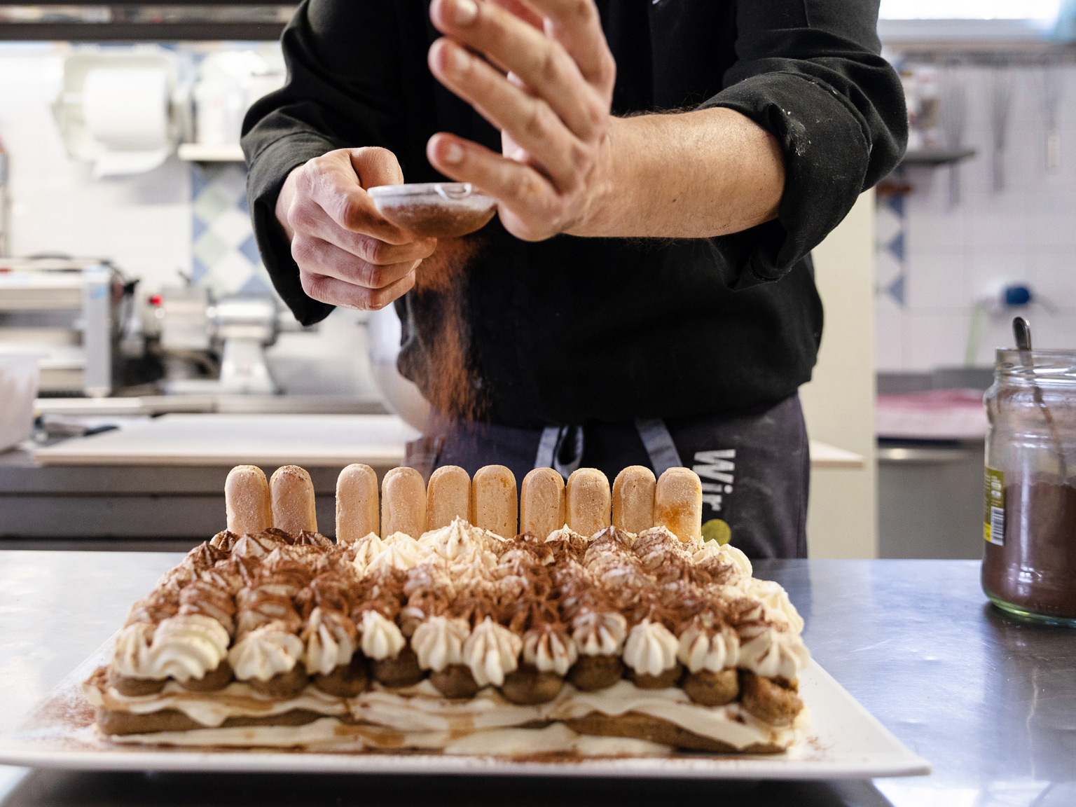 Gabriella, Giannis Ehefrau, geht schon frühmorgens los, um frische Produkte zu erwerben, in Longiano. Wie in der Familie üblich, überwacht sie die Küche, mit Hilfe ihrer Mitarbeiter.