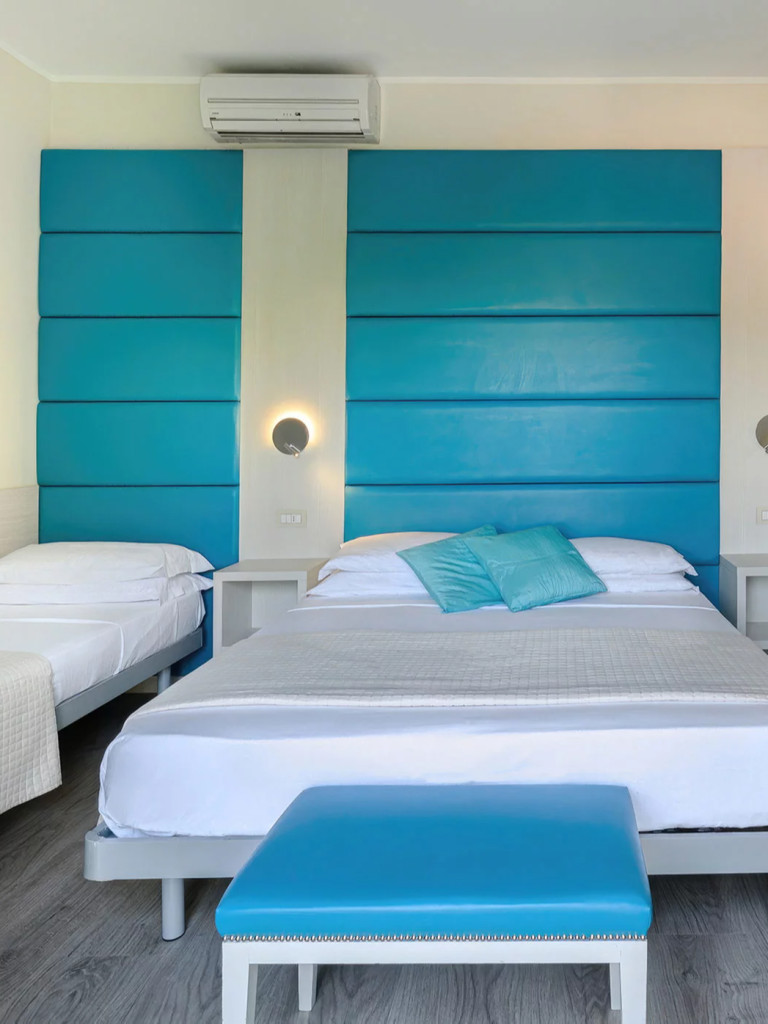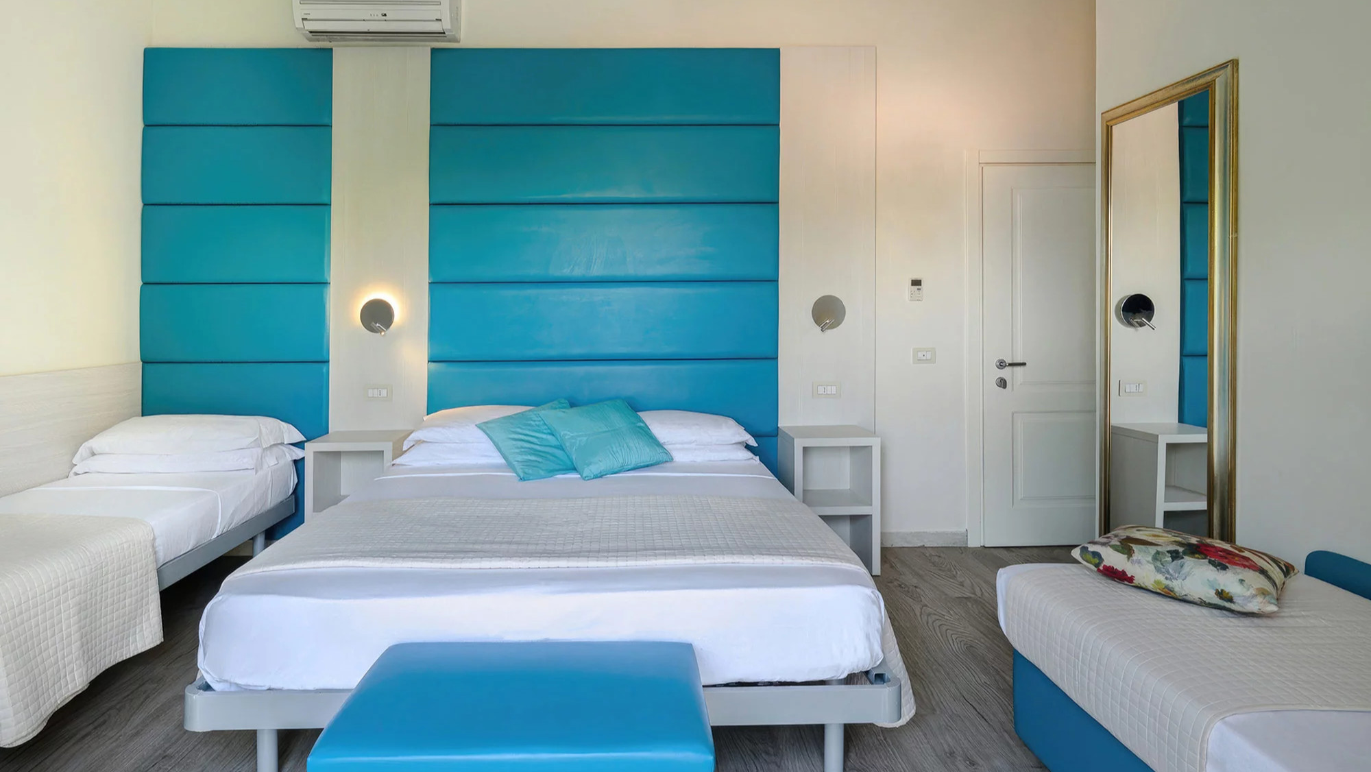 Jedes Family Superior Zimmer ist für 4/5 Personen ausgestattet (4 Einzelbetten oder 3 Einzelbetten und ein Etagenbett).