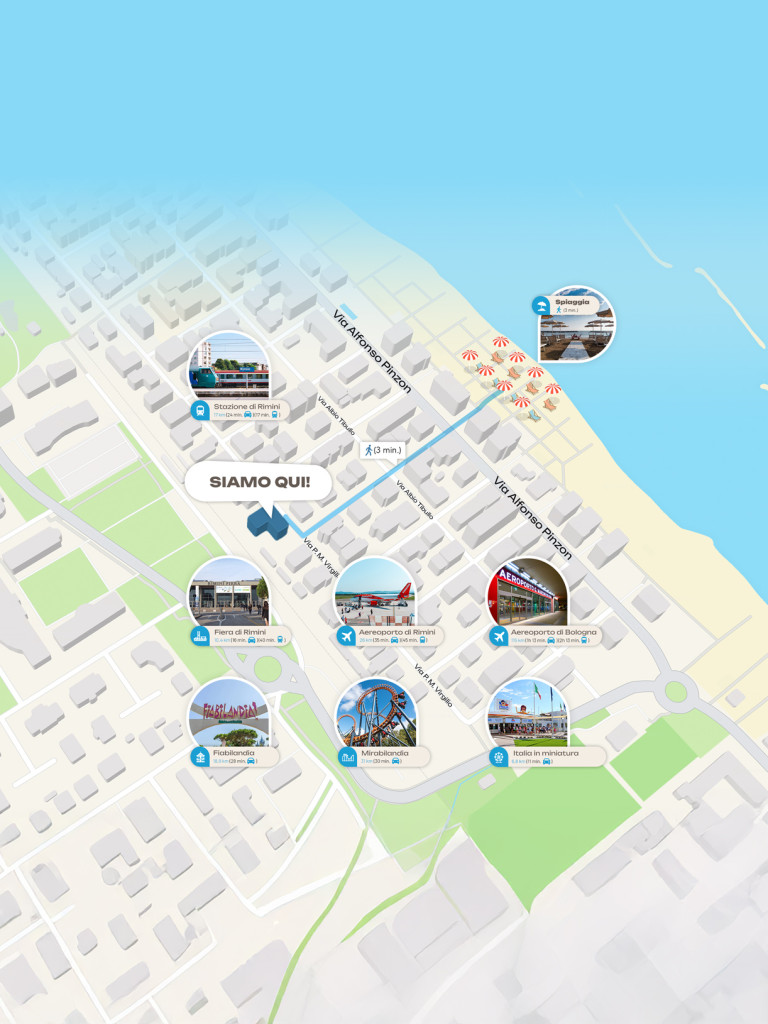 - Una volta scesi alla stazione di Igea Marina l’Hotel si trova a circa 300 metri (4 minuti a piedi).