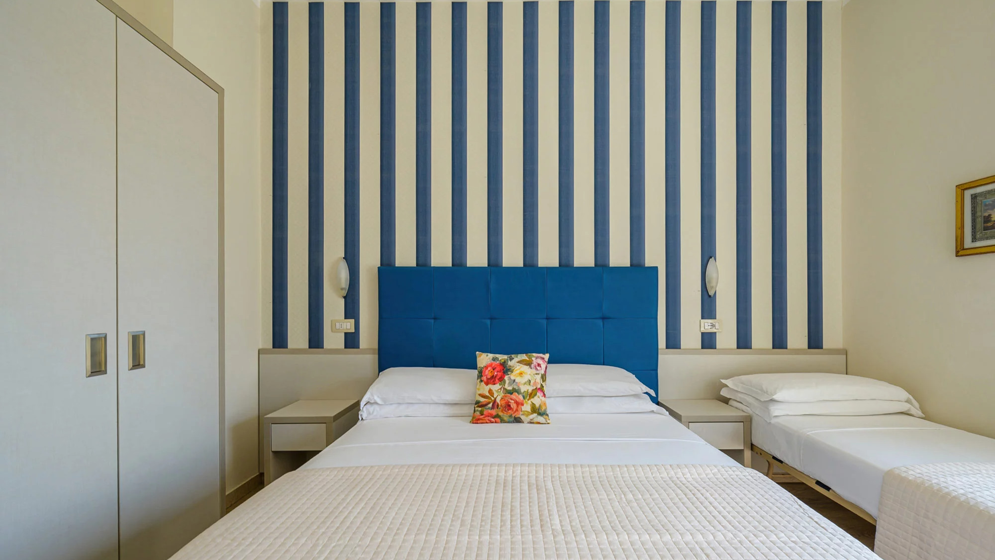 Les Chambres Familiales Classiques de l'Hôtel Acquamarina sont des chambres récemment rénovées, très confortables, avec climatisation indépendante, salle de bain privée, sèche-cheveux, coffre-fort, WI-FI, minibar, TV satellite et balcon.